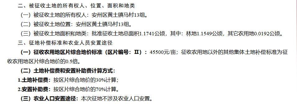 3、绵阳市人民政府征收土地公告安州区黄土镇马村7组